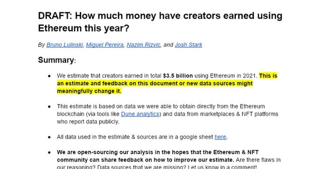 Estimating Creator Revenue on Ethereum in 2021 (~$3.5 billion) – help improve this estimate! (google doc)