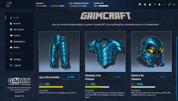 Any user can participate in the GAIMIN network – GAIMIN does not just reward users based on hashpower contribution, GAIMIN has also released a range of in game NFTs based on hours connected to the data processing network. This is hashpower agnostic and enables any gamer to obtain usable and functional NFTs.