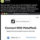 Emergency Security warning: Multiple sites including CoinGecko seem to be compromised. Be careful while making any txns