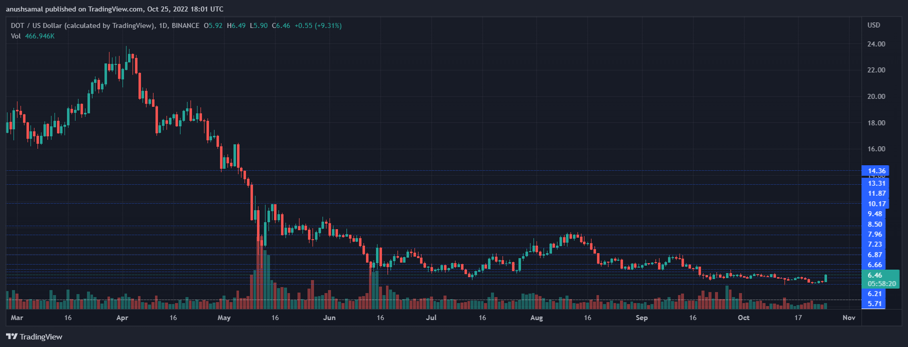 Falling from the $6.21 mark could bring the Polkadot price to $5.71. The amount of Polkadot traded in the last trading session increased, which meant that buyers returned to the market.