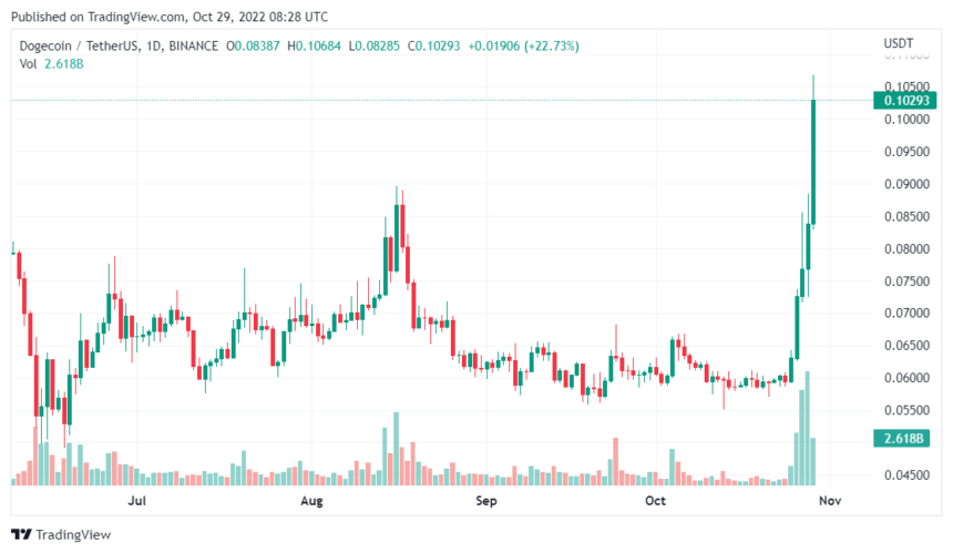 Other altcoins weren’t performing better following the continuous Feds interest rate hike due to the inflation. But the tides turned from October 25, and today, one of the altcoins showing bullish momentum is Dogecoin DOGE.