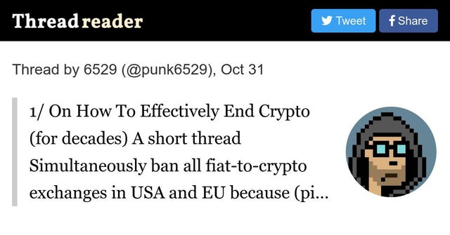 Is being blindly pro-America and pro-EU going to save us? or Destroy us? 6529 Lays Out the Road To Full Western Crypto Ban & Confiscation In the Case Of a ‘Crisis” That Involves Crypto