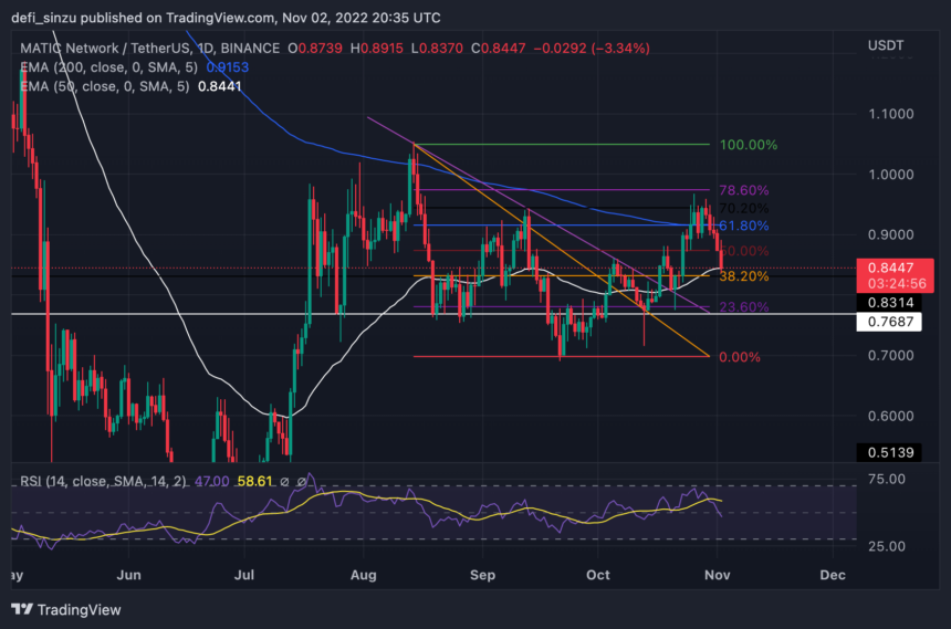 The price of MATIC has maintained its bullish structure above the $0.85 region, but this could be a mirage as the price struggles to hold this region from sellers.
