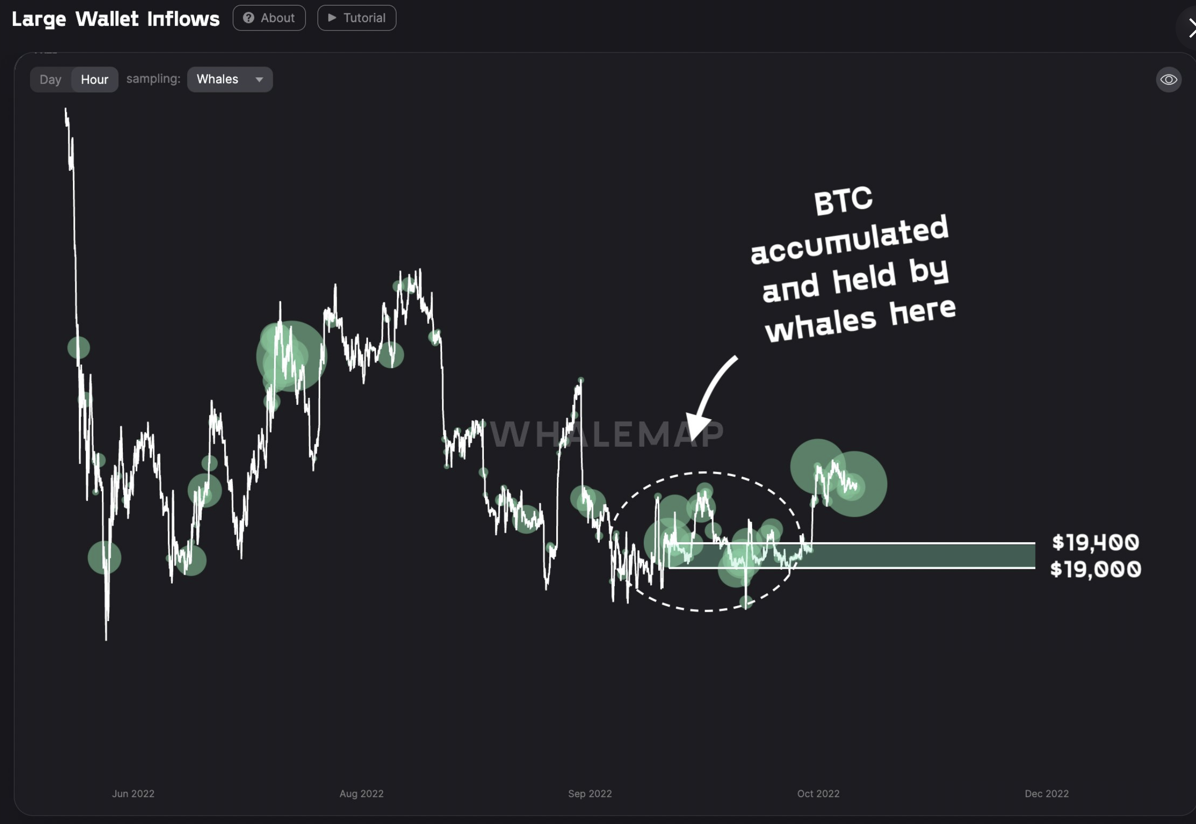 Another analysis by Whalemap reveals that whales have been buying Bitcoin in the range between $19,000 and $19,400 amplified. The analytics firm estimates the accumulation by whales in September to be around 120,000 BTC. Therefore, this zone should also serve as the closest support.