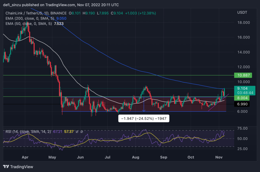 The price of LINK needs to break and close above $9.2 for the price to rally to a region of $10 ahead of its anticipated staking.
