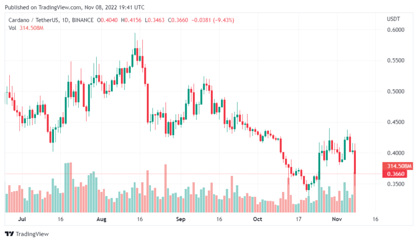 The crypto market has halted its brief bullish rally, with prices generally dropping; for example, Cardano (ADA) has lost 9% in the last 24 hours. Currently, Cardano is trading at $0.366.