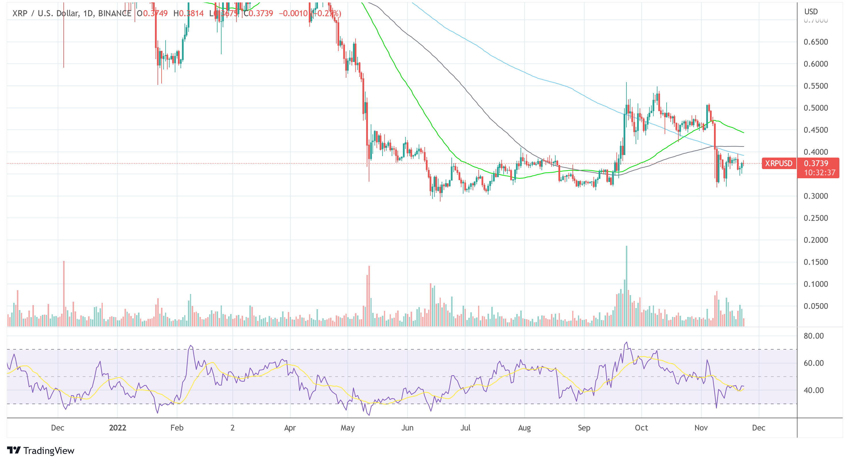 At press time, the XRP price was still in no-man’s land on the 1-day chart. After crashing below $0.50 following the FTX bust, XRP is currently trading at $0.3739.