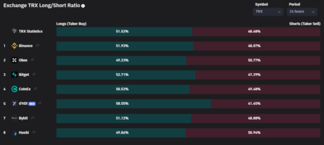 TRX investors and traders are unquestionably instilled with confidence by recent events. According to CoinGlass, this is further underlines by the fact that more traders are entering long holdings than short positions.