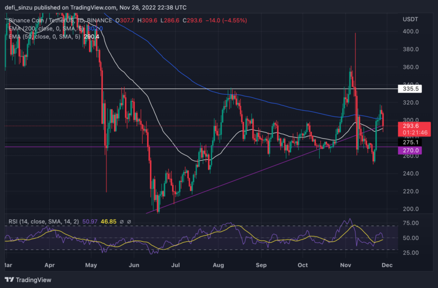 Despite the relief bounce across the market, with the price of BNB rallying from a weekly low of $260 to a high of $310, the crypto market remains uncertain and turbulent, affecting the price of BNB. Many altcoins are struggling for survival, trying to stay afloat as the prices of altcoins continue a downward price movement.