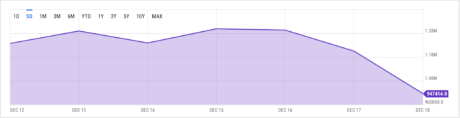 New unique addresses per day were also down during this time and are down by 15.27% in the 24-hour period. Likewise, transactions per day also took a beating, falling 15.27% during this time while transaction fees realized on the network declined by 10.86%.