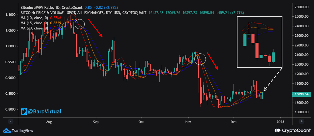 Bitcoin MVRV Ratio Triple Ribbon Is Close To Bearish Crossover