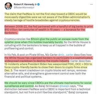 Robert F. Kennedy Puts the CBDCs vs. Cryptocurrencies Debate in the American Political Arena. Let’s hope that the general public understands the urgency to act to protect themselves.