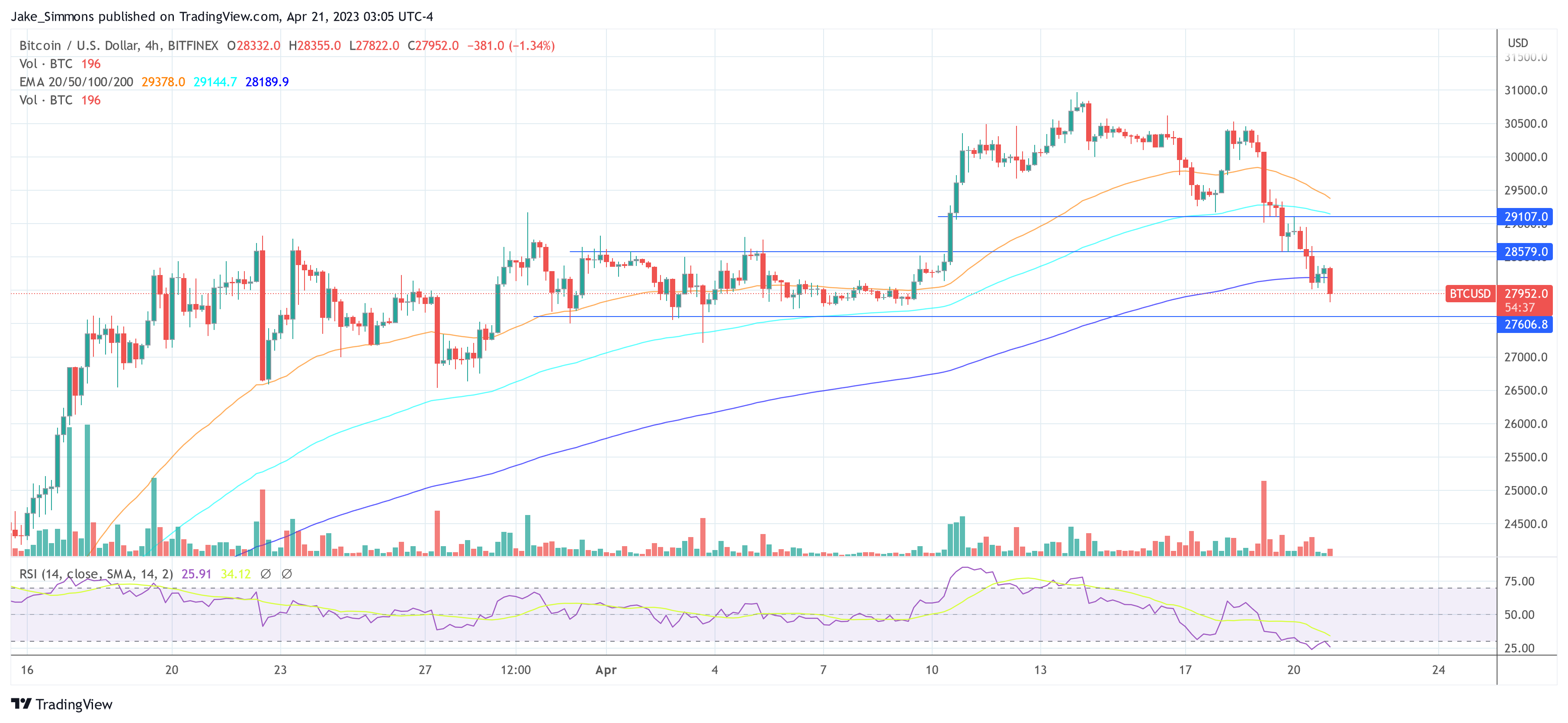 At press time, the Bitcoin price was trading at $27,952, continuing the downward trend of the last two days.