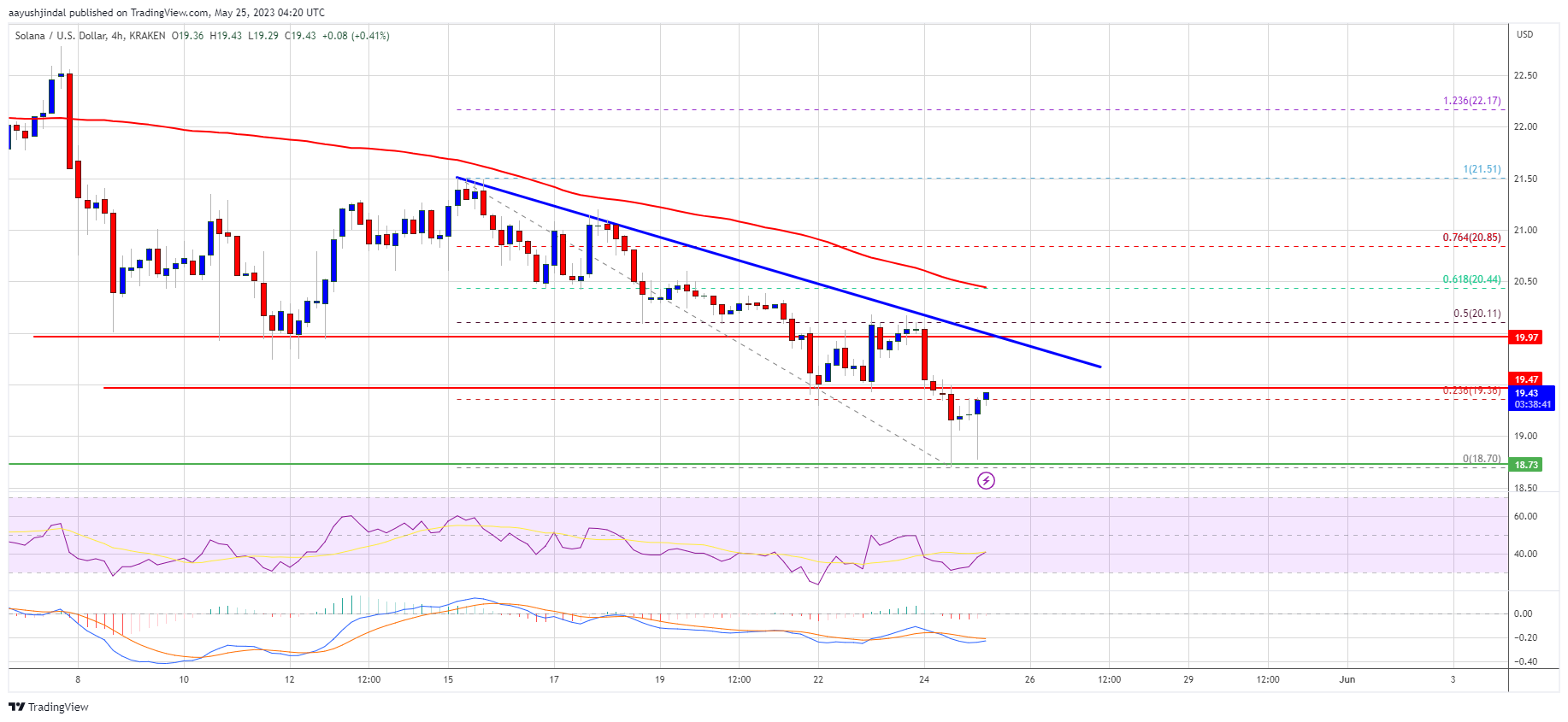 The bears gained strength and pushed the price below the $20 support. The price is now showing bearish signs below $20, similar to Bitcoin and Ethereum. A low is formed near $18.70 and the price is now consolidating losses.
