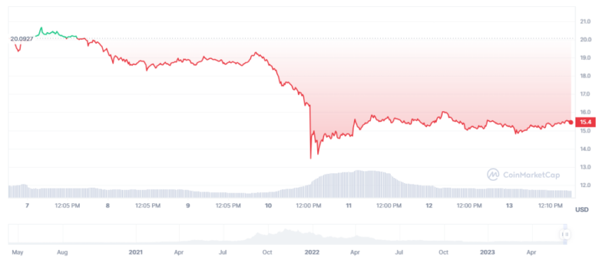 In light of this regulatory setback, investors closely monitor SOL’s performance. According to CoinMarketCap, SOL is currently priced at $15.45, sustaining a seven-day slump of 23.13%.
