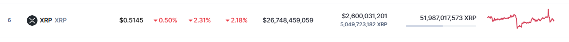 CoinMarketCap data shows that XRP has traded at $0.51, down 2.31% in the previous 24 hours. Among the hubbub around the release of the Hinman documents, the token also suffered a hit in the weekly timeframe, falling by 2.18%.