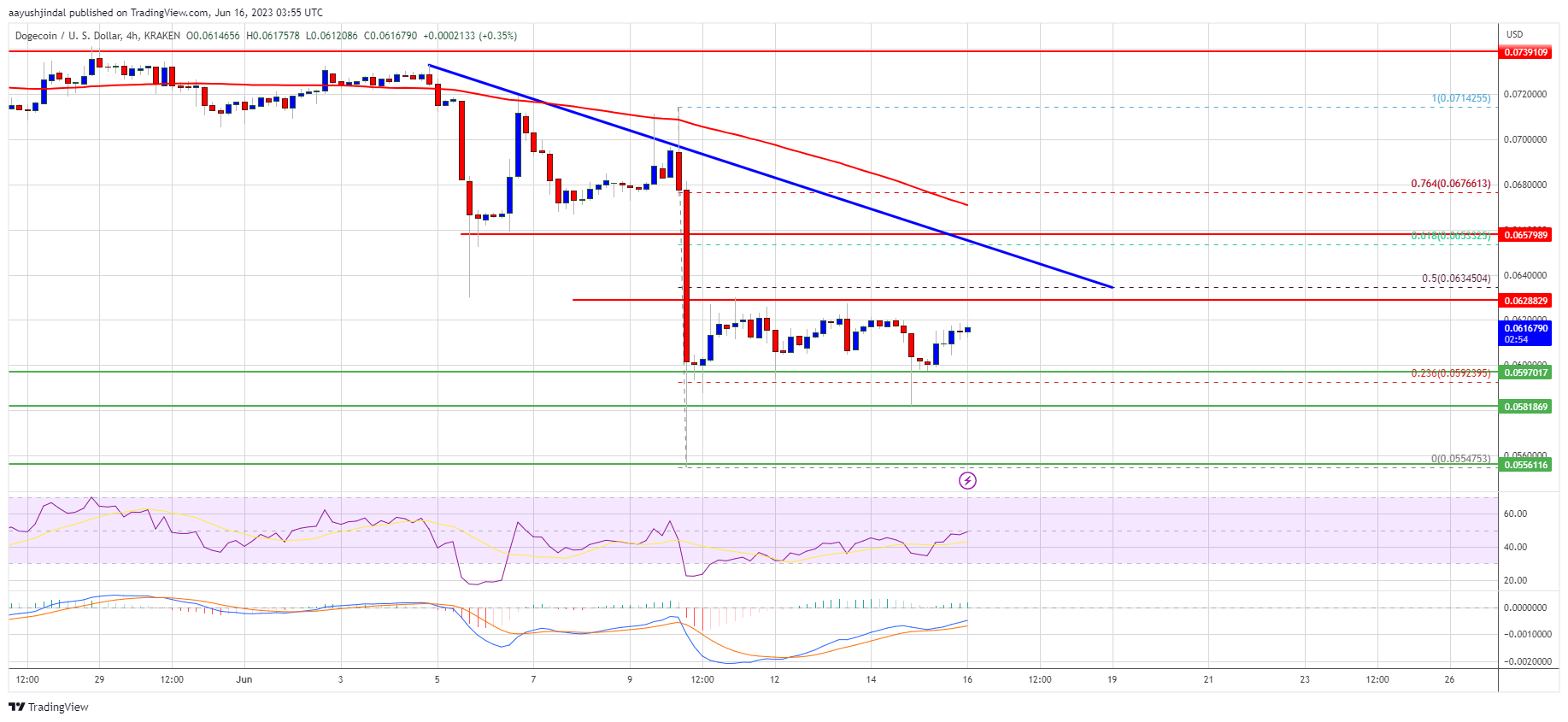 Major Support Levels – $0.0595, $0.0580, and $0.0554.