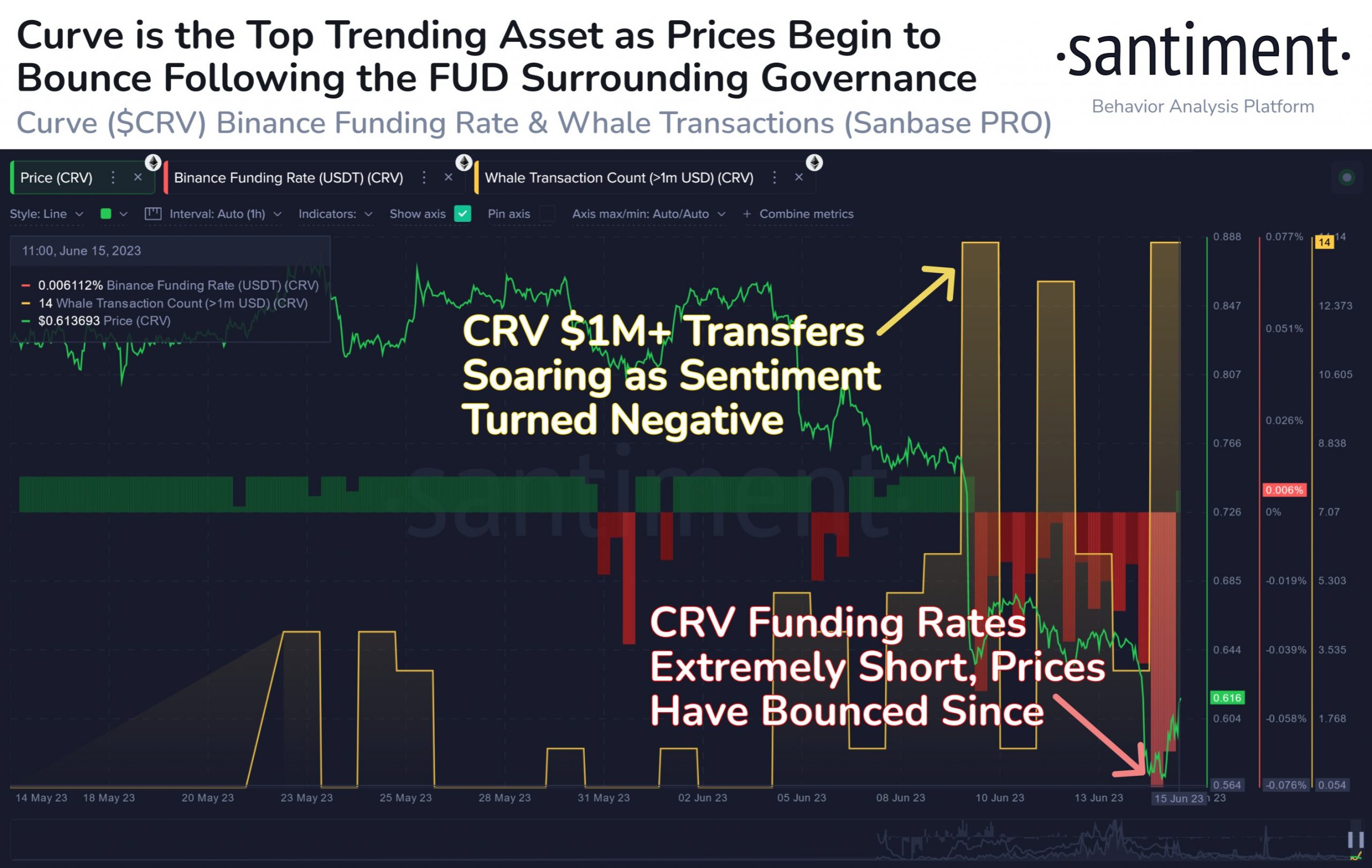 The decline in the asset’s price came in part because of all the FUD in the wider cryptocurrency sector, like the SEC charges against Binance and Coinbase, or the Fed interest rates decision, while the other factor was CRV-specific uncertainty.