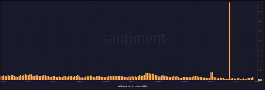 While the BNB Chain has garnered widespread enthusiasm and positioned itself as a competitive player in the crypto market, recent data from Santiment reveals a nuanced picture. Despite the chain’s impressive user base, as measured by daily active addresses, the level of excitement appears to be relatively consistent without any notable spikes, according to Santiment’s analysis.