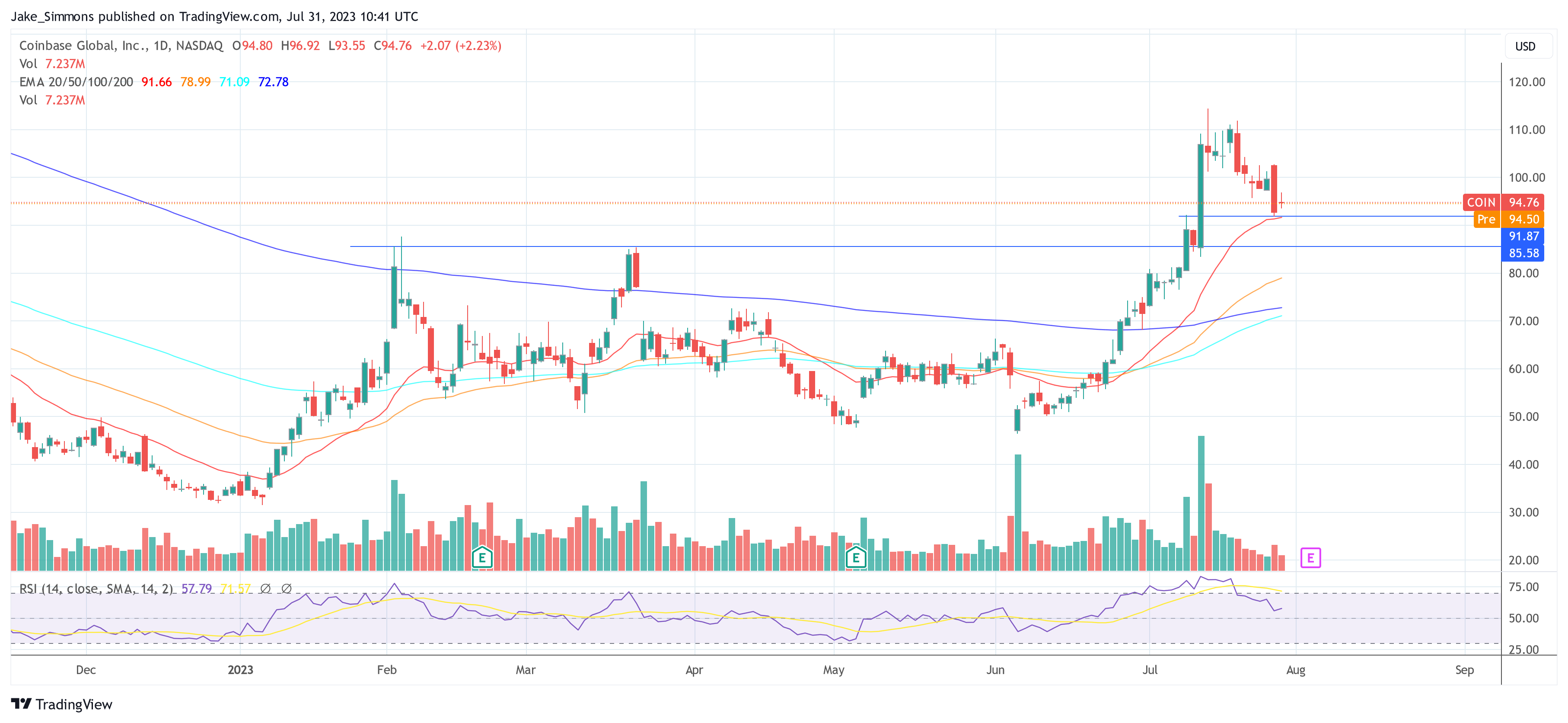 In the wake of the news, the Coinbase share price (COIN) plummeted in an initial reaction by more than 10%, from $102.35 to $91.94. However, at press time, the price recovered somewhat and traded at $94.76.
