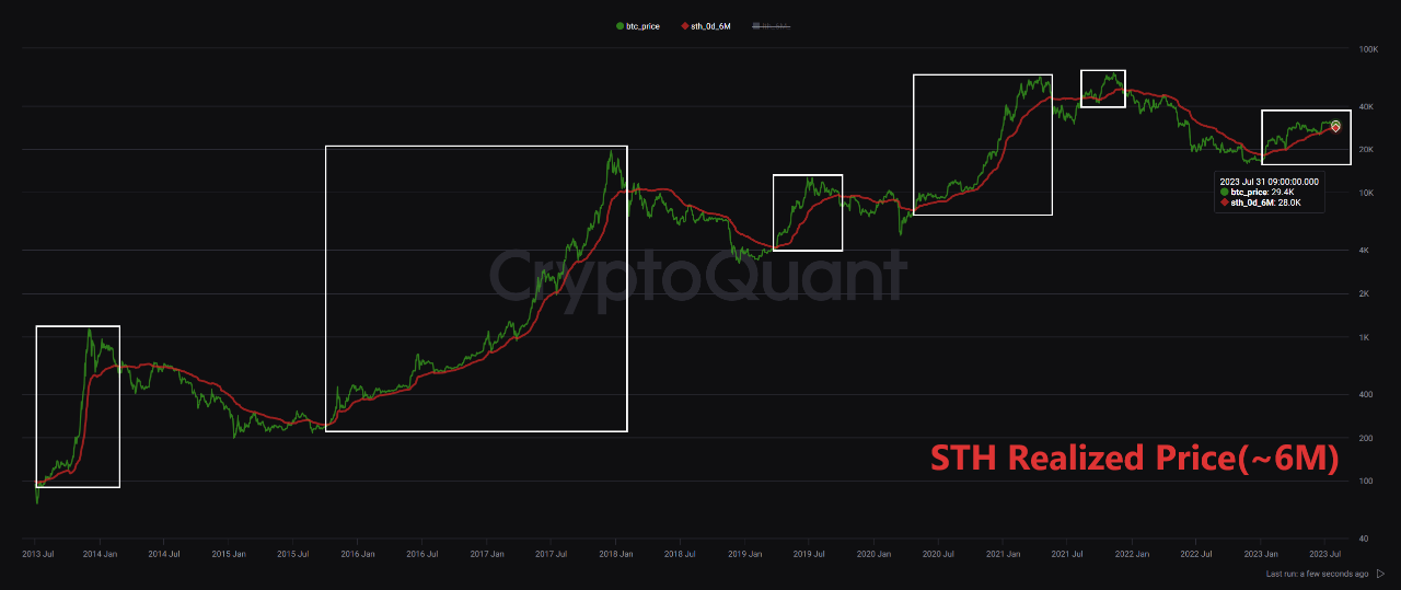 As pointed out by an analyst in a CryptoQuant post, the realized price of the short-term holders at $28,000 could be an essential level for the asset. The “realized price” here refers to the cost basis (that is, the buying price) of the average investor in the Bitcoin market.