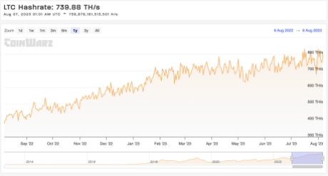 The Litecoin hashrate has since retraced back into the TH/s territory, now sitting at 739.88 TH/s as of Monday, August 7. But a look over the last year’s hashrate chart shows that even this is a high level for the blockchain’s hashrate.