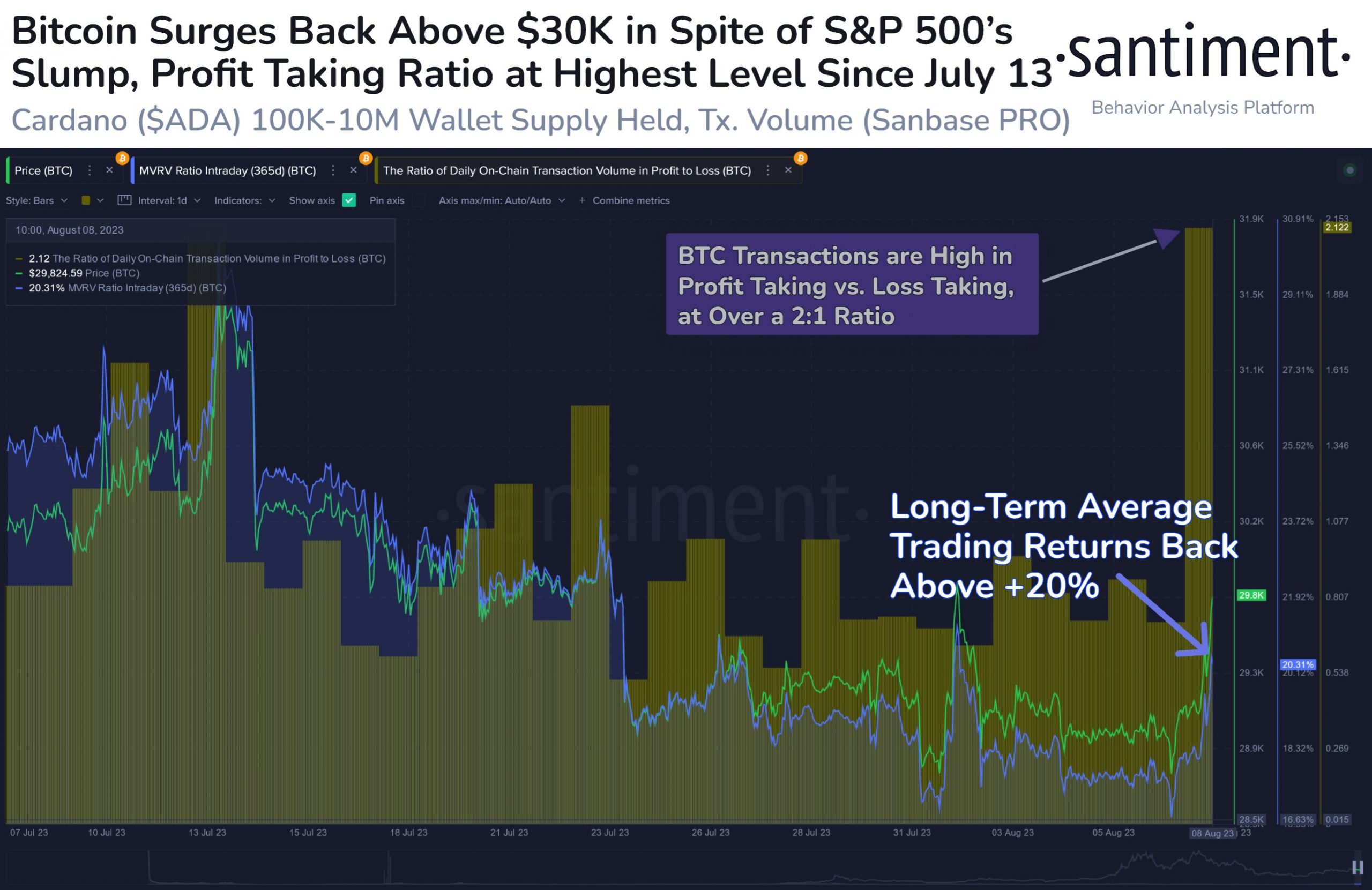 Bitcoin Retraces Back From $30,000 As Profit Taking Spikes