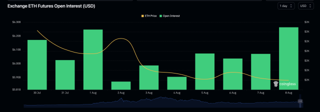 As a result of this, the total exchange ETH futures open interest in USD moved from $6 billion last week to $6.54 billion on Wednesday. Given that the ETH futures open interest across exchanges was sitting at $6.4 billion on Tuesday, it translates to a 5.98% jump in total open interest in the last 24 hours alone.