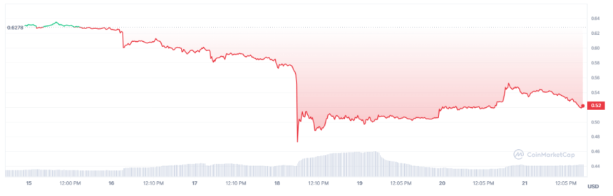 However, the cryptocurrency appears to have found a stabilizing foothold as it aligns with a crucial support trendline at the $0.5 psychological level.