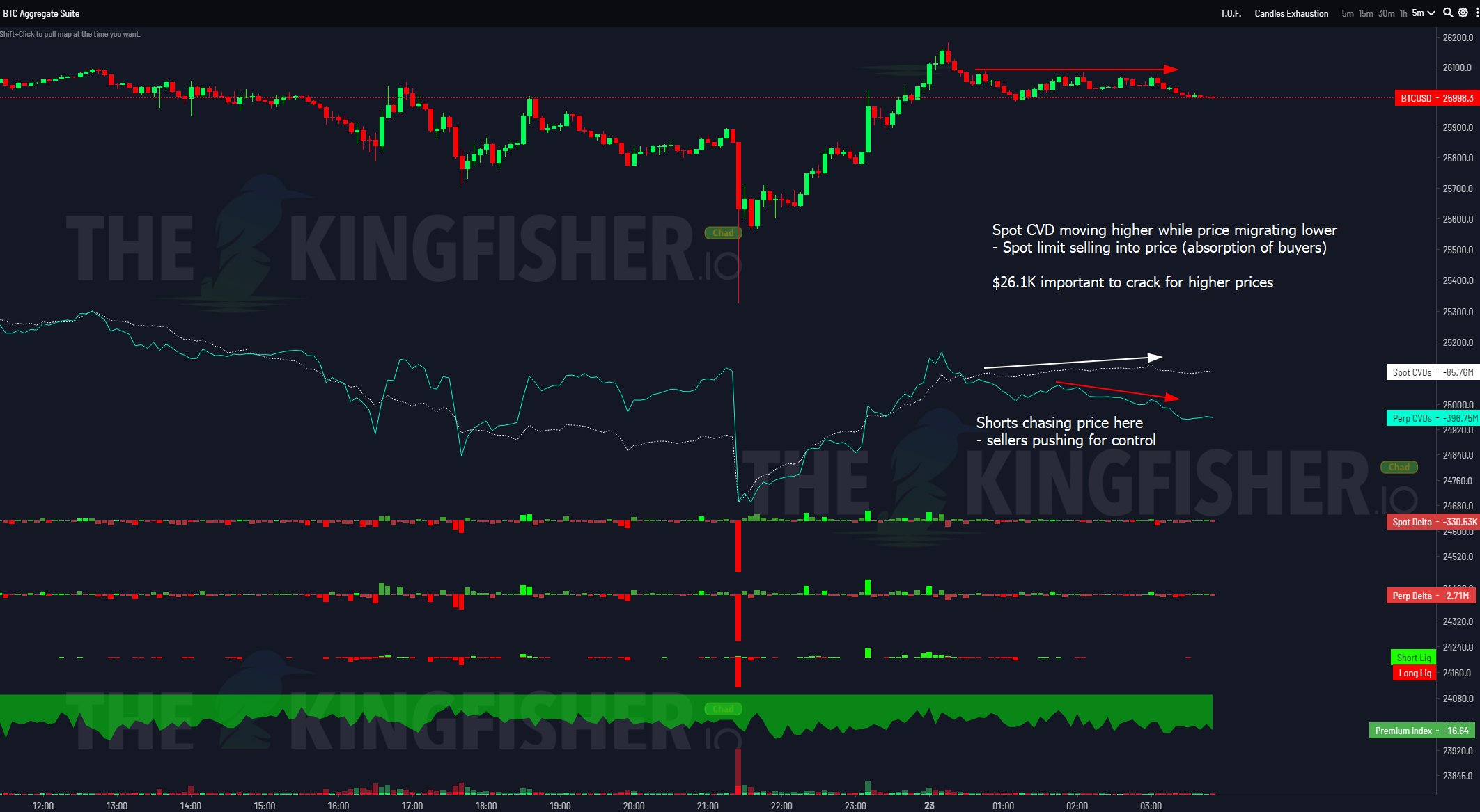 The specific price point to note here is $26,100. “This level has acted as a magnet for limit sellers,” Skew notes, “and is backed by the pattern seen in spot CVD versus price so far.” In other words, spot takers are being absorbed by limit sellers at this price, constraining upward movement.