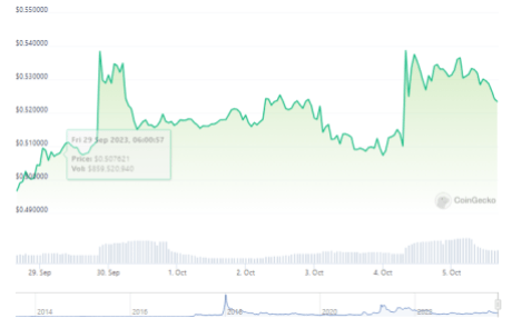 While the cryptocurrency has managed to surpass the $0.52 resistance level and is currently trading above the 50-day Exponential Moving Average (EMA), caution is warranted.