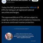 Bitcoin Pumps and then dumps after the SEC Twitter account is compromised and posts a fake announcement saying a spot ETF was approved.