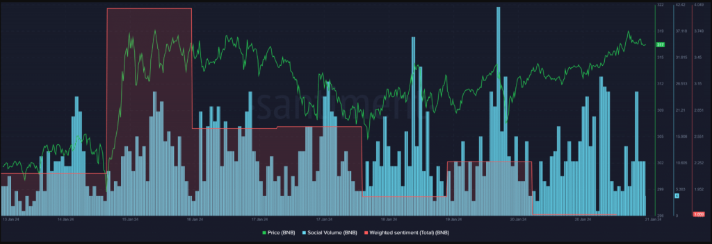 Nevertheless, BNB continues to maintain its popularity within the crypto space, boasting a high social volume. This sustained interest further underscores the coin’s potential and the attention it garners from enthusiasts and investors alike.