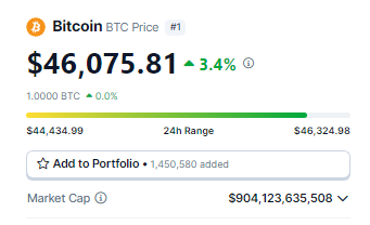 For the first time since the spot ETFs’ debut trade on January 11, Bitcoin (BTC) has surpassed $46,000. According to data from Coingecko, BTC had increased 3.4% in the previous day to $46,075 at the time of publication, maintaining a 6% increase over the previous seven days.