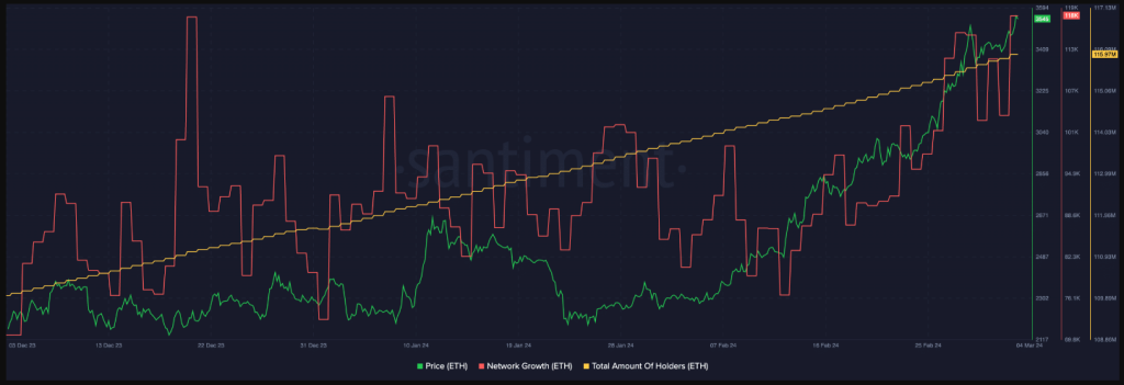 Meanwhile, new addresses were still becoming interested in Ether. Alongside that, the overall count of holders who were amassing ETH had also increased.