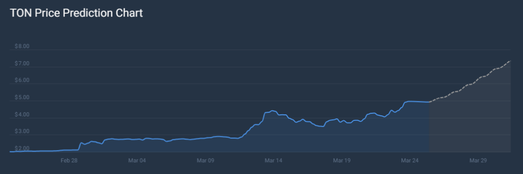 Adding to the optimism, crypto prediction platform CoinCodex forecasts a price of $6.45 for TON by March 29th, translating to a potential 30% increase within the next five days. Toncoin’s medium-term outlook also appears strong, with a 120% gain observed in the last quarter.