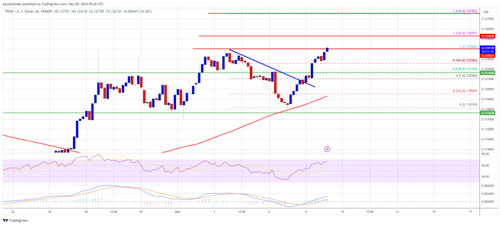 Tron price is now trading above $0.1220 and the 100 simple moving average (4 hours). On the upside, an initial resistance is near the $0.1250 level.