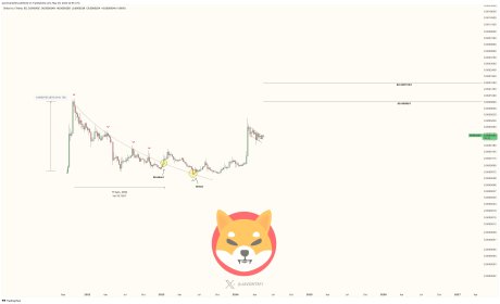 It is important to note that the analyst’s prediction began when SHIB ended a 441-day downtrend in September last year. Given the significance of the development, Marks believed SHIB was about to surge, putting his target at $0.000081, a 975% rise from $0.0000074.