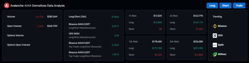 The trading scene surrounding AVAX presents a curious dichotomy. Coinglass data reveals a staggering 60% drop in trading volume, signifying a significant decline in market activity. This is further corroborated by a relatively balanced long/short ratio across various platforms, suggesting overall indecision among traders regarding AVAX’s future.