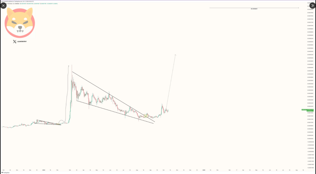 In March 2024, the pattern was apparently clear, as SHIB declined from the yearly high at $0.000045. According to Marks, it may be the breakthrough that pushes the token all the way to $0.000081.