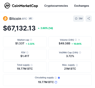 As the broader crypto market starts to rebound, Bitcoin is once more in the forefront and crosses the $67,000 barrier. Bitcoin is trading roughly $67,150 as of October 16, a good 4% increase in just 24 hours. Given that it represents the crypto’s highest price point since late July, this spike is notable.