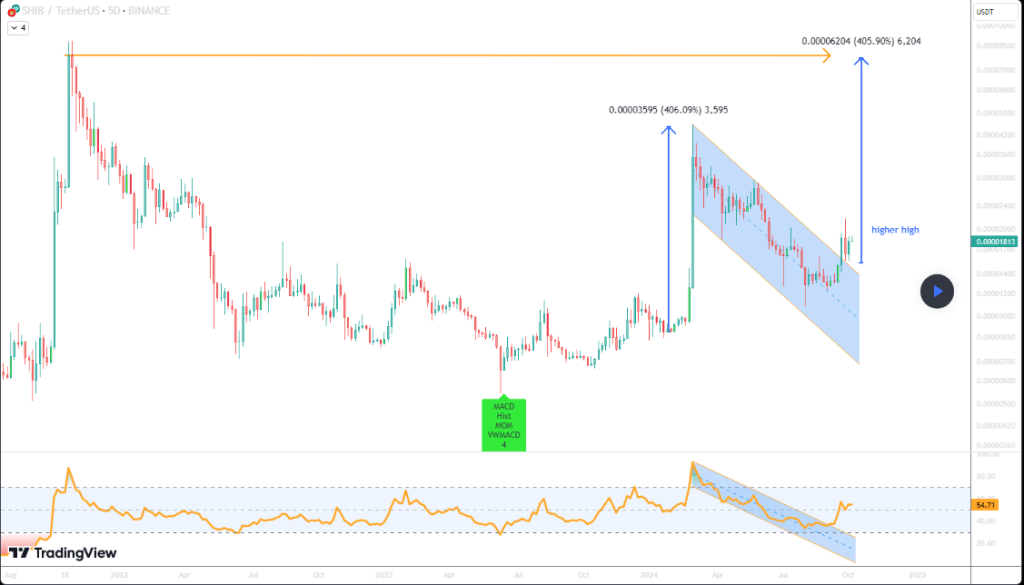 TradingView expert Without Worries has recommended that this is an opportune moment to initiate a long position in Shiba Inu. Despite a 70% decline in the token since March, numerous positive indicators have surfaced, such as RSI breakouts and trend reversals.