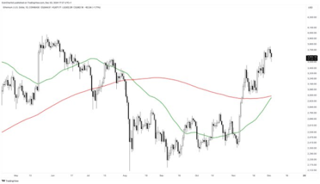 In an X post, crypto analyst Tony Severino mentioned that the Ethereum price is heading to a golden cross this week. This golden cross occurs when a short-term moving average (MA), like the 50-day MA, crosses a long-term MA, like the 200-day MA. This typically indicates that the crypto in question is set to enjoy a long-term upward trend.