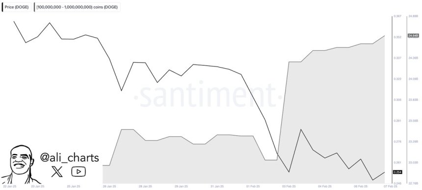 Dogecoin has faced increased volatility and selling pressure as February kicks off with uncertainty across global markets. The meme coin struggles to break above the $0.25 mark, reflecting broader concerns amid US trade war fears and macroeconomic instability. Investors remain cautious, with many waiting for clear signals before jumping back into the market. However, key on-chain data suggests that big players are taking advantage of current price levels.
