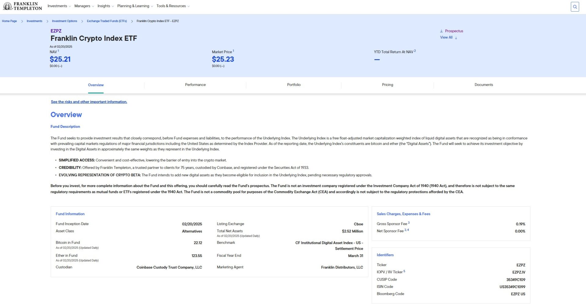 Franklin Crypto Index ETF launched on Feb 20. Source: Franklin Templeton