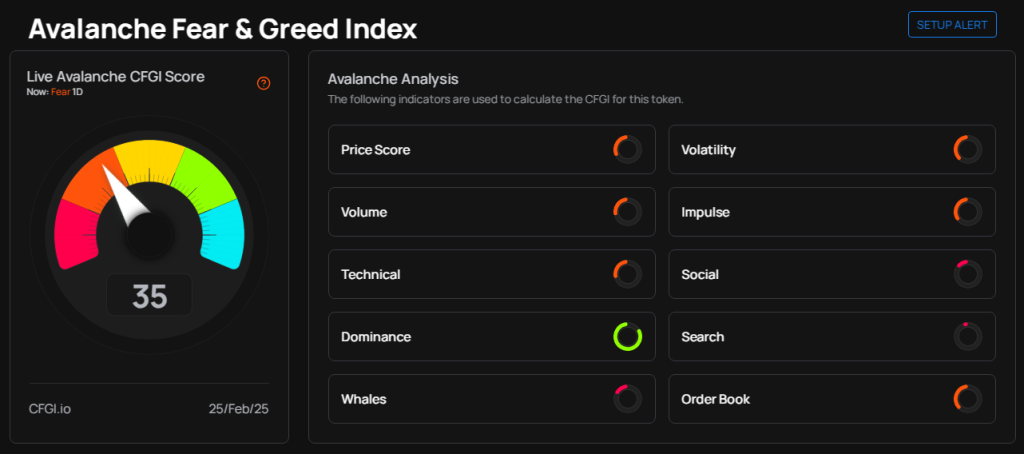 The recent price movement of AVAX tells a story of eroding support and prolonged weakening. Since February 1, the token has been on a steady decline after failing to maintain momentum following a challenge of the $34.40 resistance level.