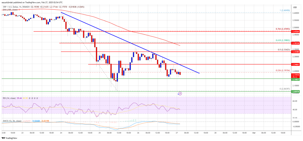 XRP price started a fresh decline below the $2.450 and $2.350 support levels. The price is now consolidating losses and remains at risk of more losses.