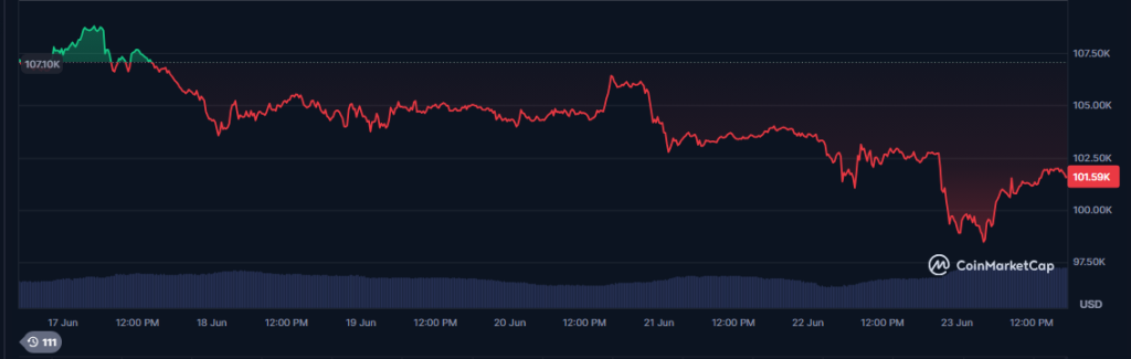 Based on reports, it was US strikes on Iran that triggered the initial slide. The price drop happened late Sunday, pushing Bitcoin below six figures for the first time since early May.