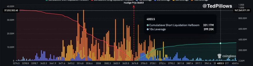 Massive Short Liquidation Looms As Ethereum Targets $4,000