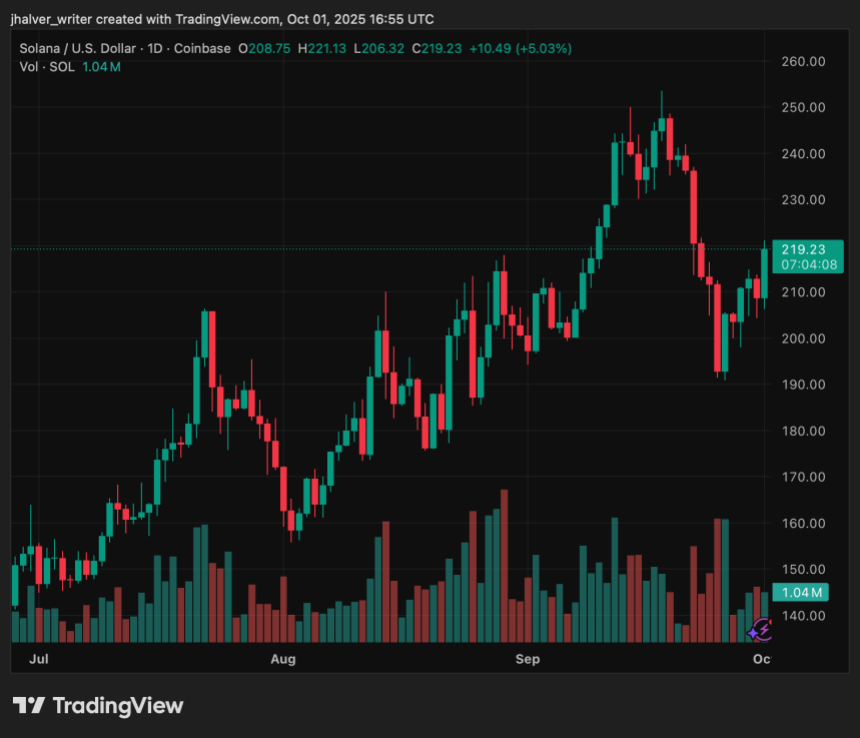 Solana (SOL) shook off a swift sell-off to $205 on Tuesday, rebounding above $209–$216 as institutional-sized wallets scooped the dip while over-levered retail longs were flushed. The slide coincided with U.S. shutdown jitters across risk assets, but crypto quickly mirrored equities’ intraday recovery.